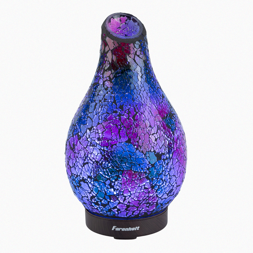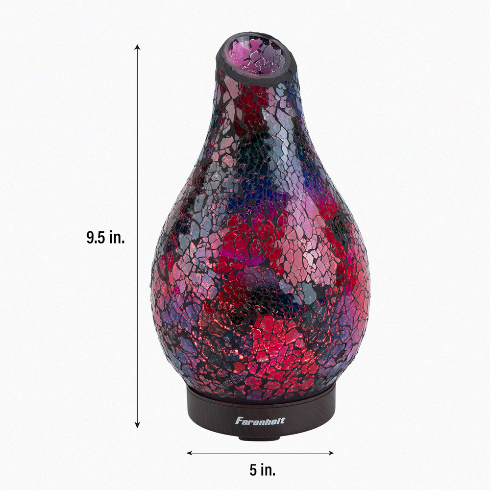Our Farenheit Ultrasonic Glass Essential Oil Diffuser adds a perfect touch to your room with a pleasant fragrance, providing a soothing environment for a good night's rest after a long day. This diffuser delivers the aroma of essential oils without heat or a fan. Refresh your air with a cool mist of your favorite essential oil. Our aroma humidifier uses energy-efficient ultrasonic technology to release a calming fragrance into your air without replacing filters or wicks. Designed to resemble a beautiful vase, it emits a soothing, warm light and offers seven light settings for a warm and cozy atmosphere in any room.