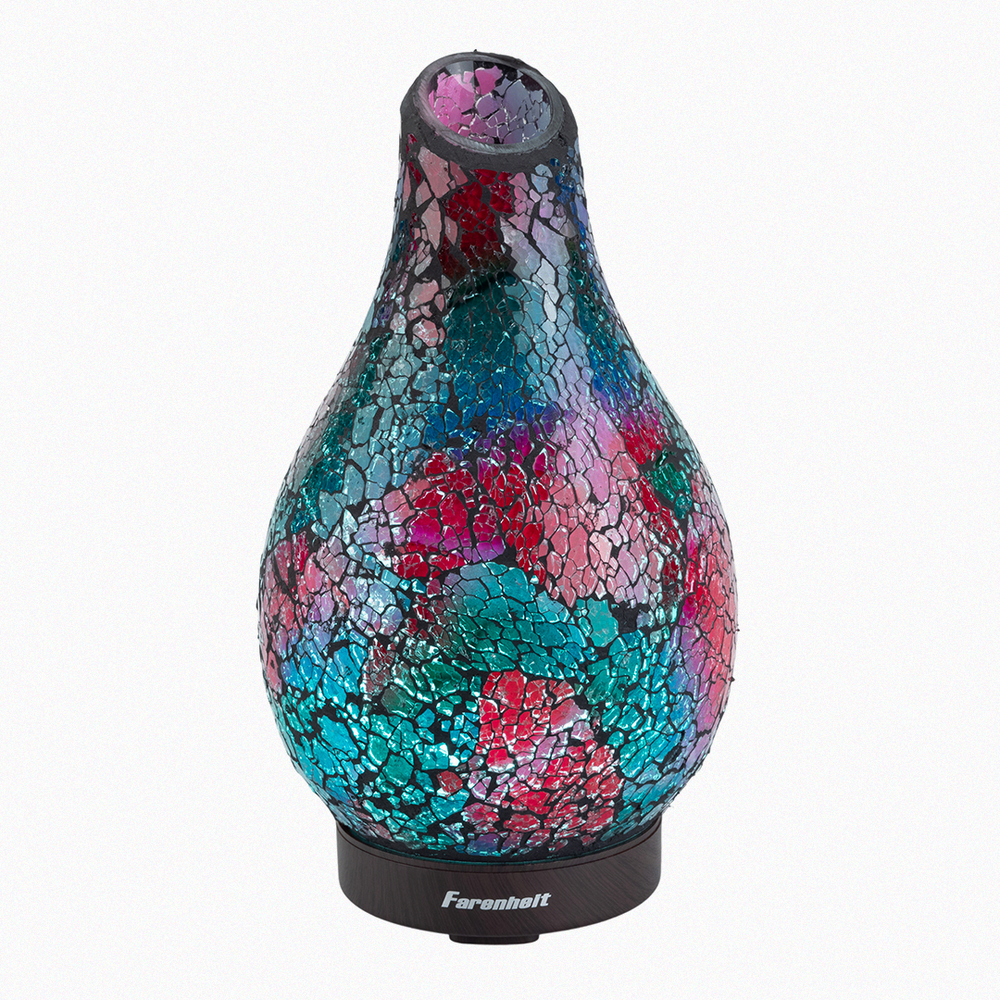 Our Farenheit Ultrasonic Glass Essential Oil Diffuser adds a perfect touch to your room with a pleasant fragrance, providing a soothing environment for a good night's rest after a long day. This diffuser delivers the aroma of essential oils without heat or a fan. Refresh your air with a cool mist of your favorite essential oil. Our aroma humidifier uses energy-efficient ultrasonic technology to release a calming fragrance into your air without replacing filters or wicks. Designed to resemble a beautiful vase, it emits a soothing, warm light and offers seven light settings for a warm and cozy atmosphere in any room.