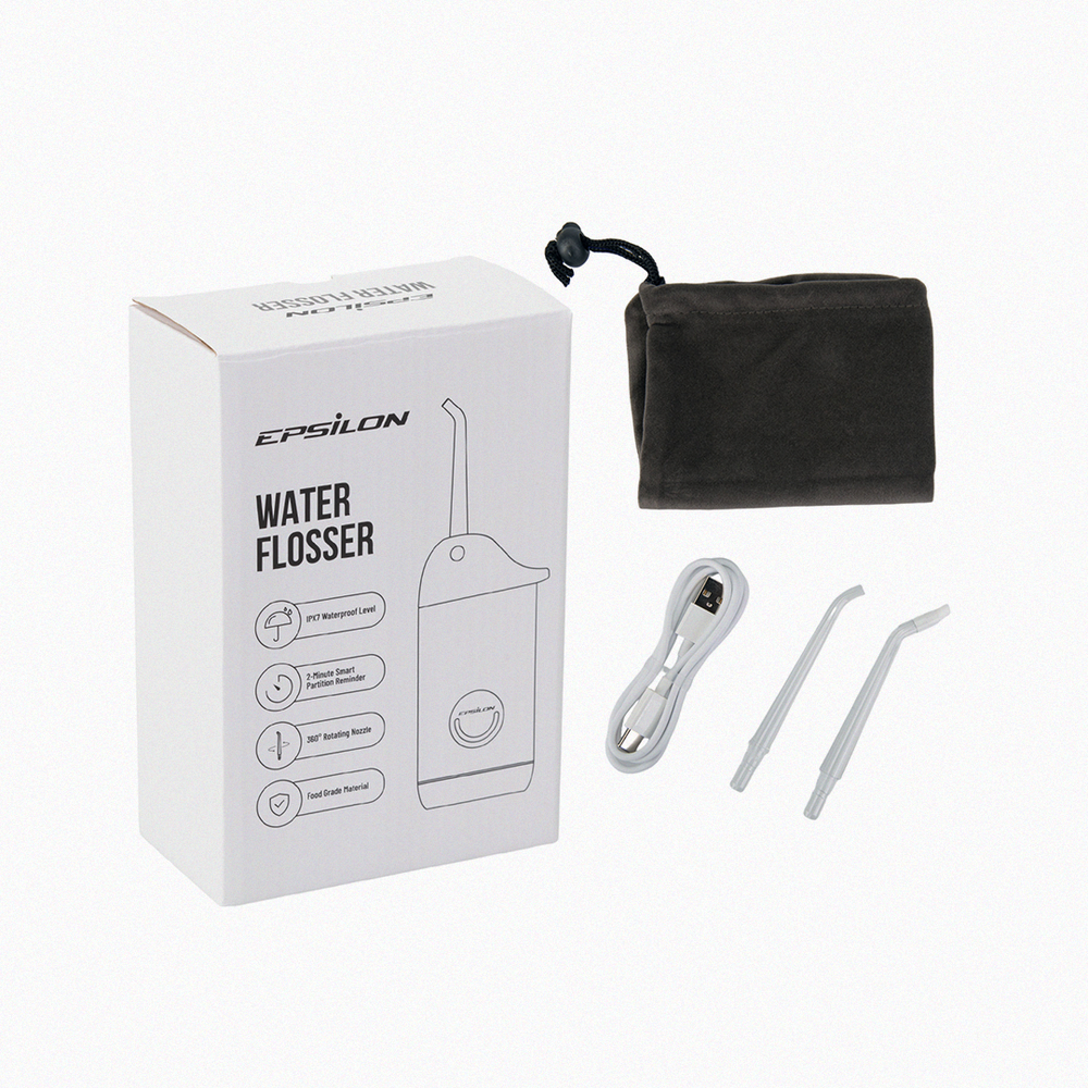 [WHAT'S INCLUDED]The Epsilon Portable Water Dental Flosser – Blue is an advanced oral care solution designed for effective plaque removal, gum health, and fresher breath. Featuring four adjustable cleaning modes, a 360° rotating nozzle, and a rechargeable battery, this cordless water flosser provides professional dental care at home and on the go. Its portable design, long battery life, and IPX7 waterproof protection make it the perfect choice for travelers, busy professionals, and daily use.