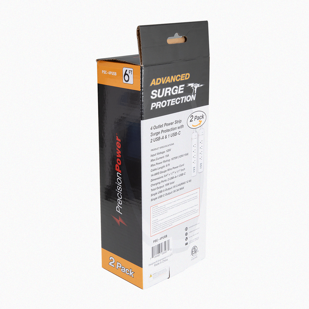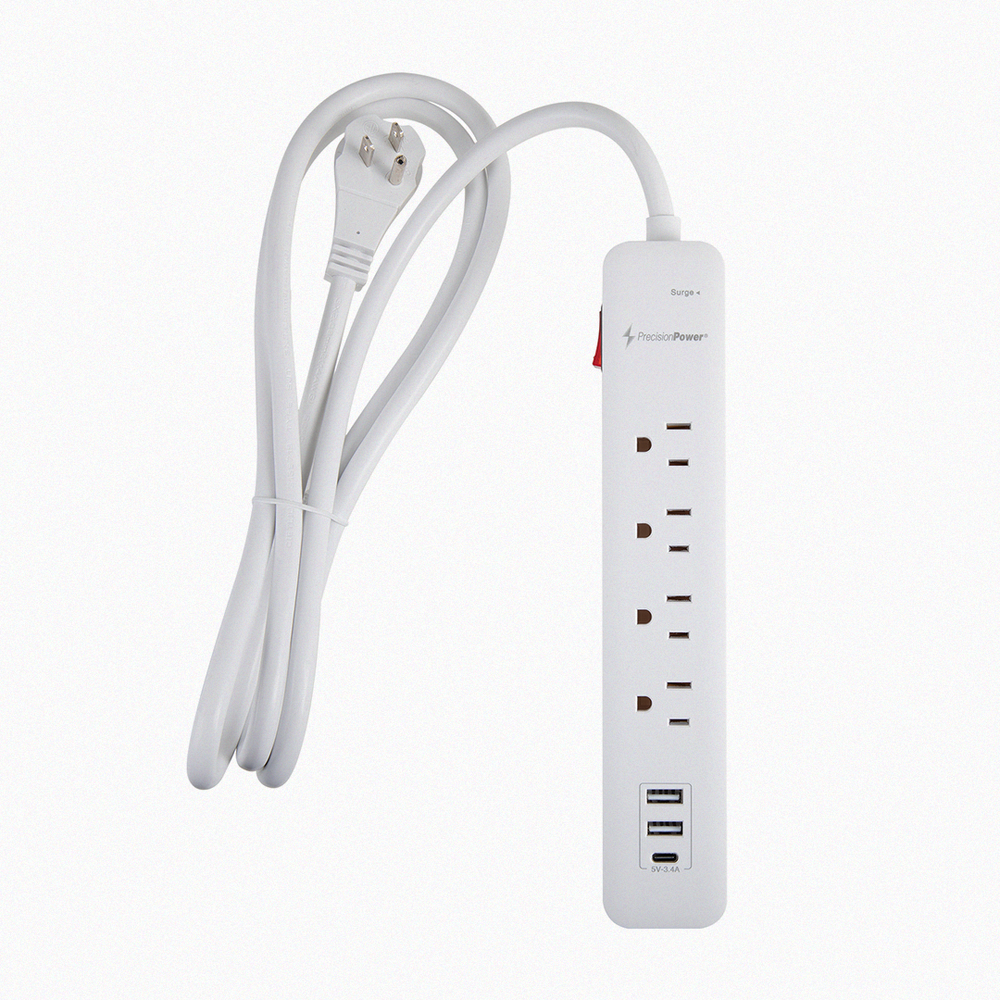 Invest in the Precision Power 4-Outlet Surge Protector with USB Ports to enhance the safety and efficiency of your electronic setup, whether at home, in the office, or on the go.